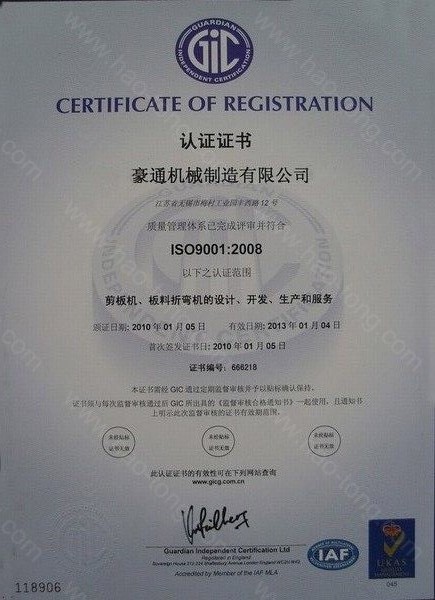 certificate---- Haotong Machinery Manufacture Co.,Ltd.